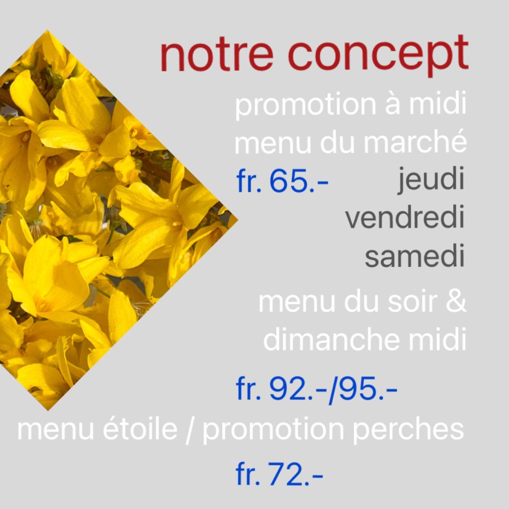 Les mets proposés sur cette carte et qui ne sont pas signalés par un astérisque (*) sont entièrement élaborés sur place à partir de produits bruts et de produits traditionnels de cuisine selon les critères du label « Fait Maison » établi par la Fédération romande des consommateurs (FRC), GastroSuisse, la Semaine du Goût et Slow Food CH.